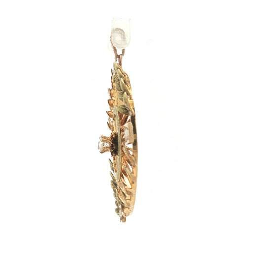 10 karat Victorian Laurel Wreath Pearl and Diamond Pendant