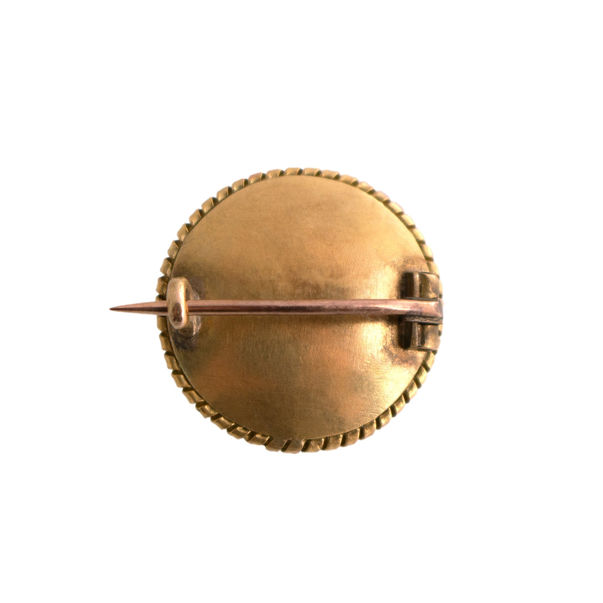 An antique 18k yellow gold amethyst cabochon and seed pearl brooch. This is a lovely little ornate piece. In great condition. It measures 7/8" an inch across. It is not stamped but it has been gold tested with an Auracle AGT3 electronic gold tester.