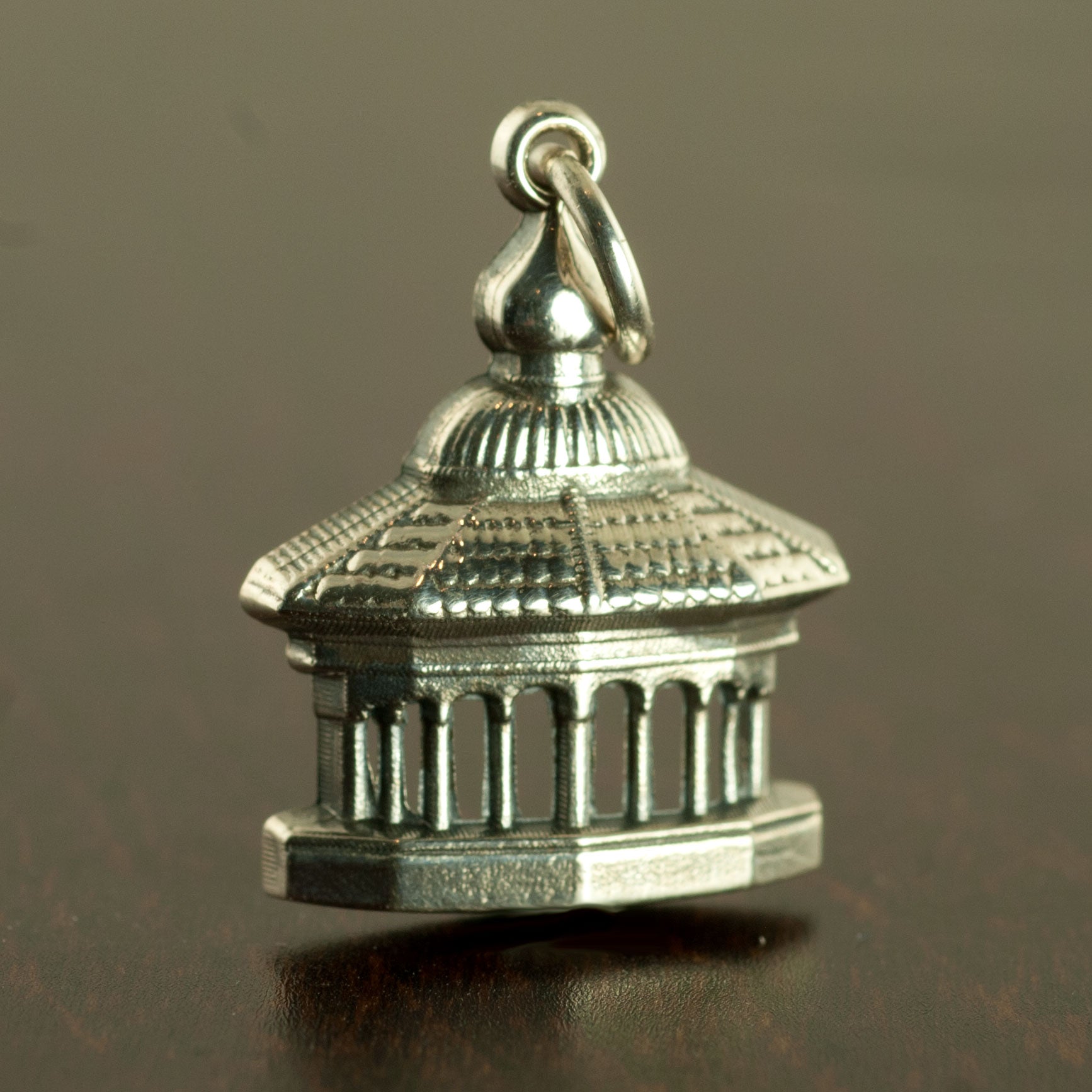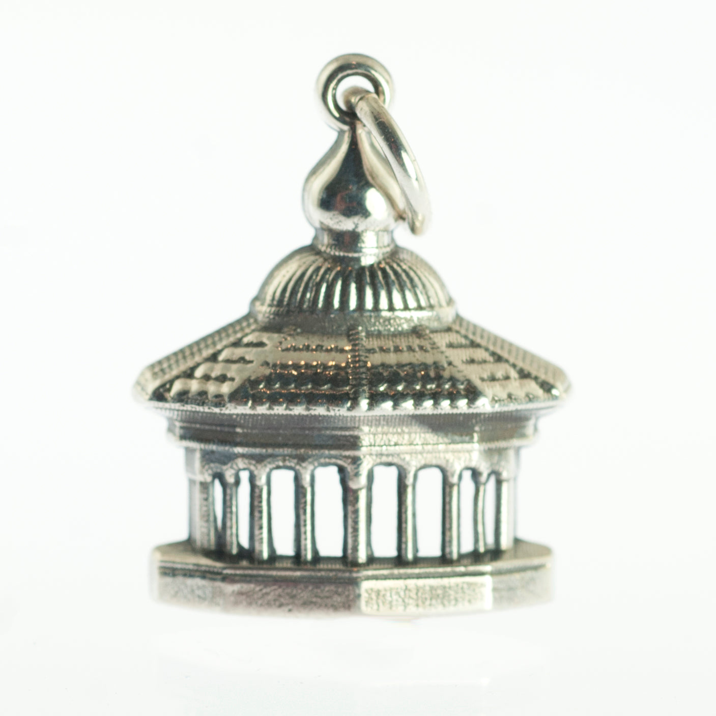 This is a sterling silver charm depicting the Cincinnati Eden Park Gazebo.