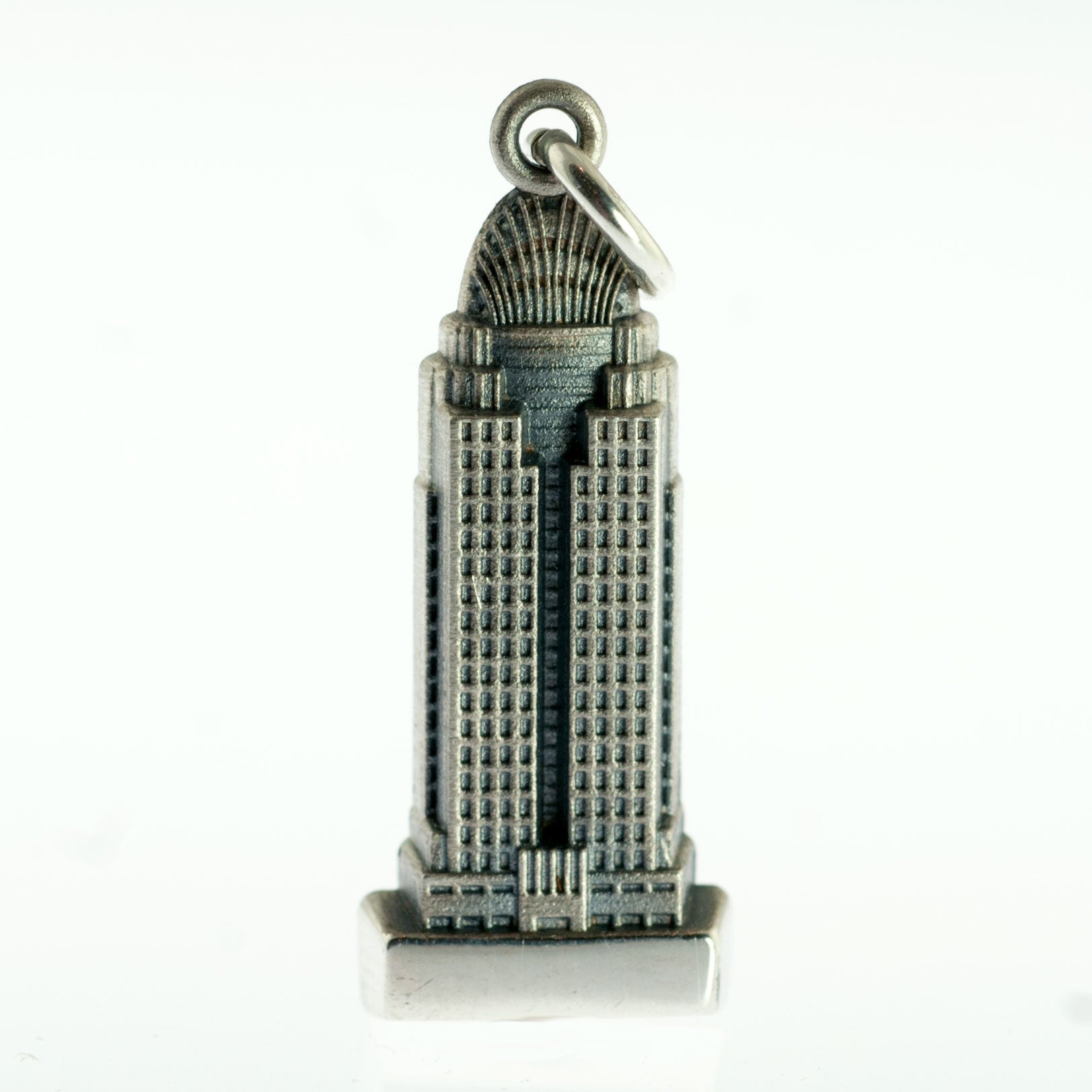 A sterling silver charm depicting the Great American Tower located in downtown Cincinnati.