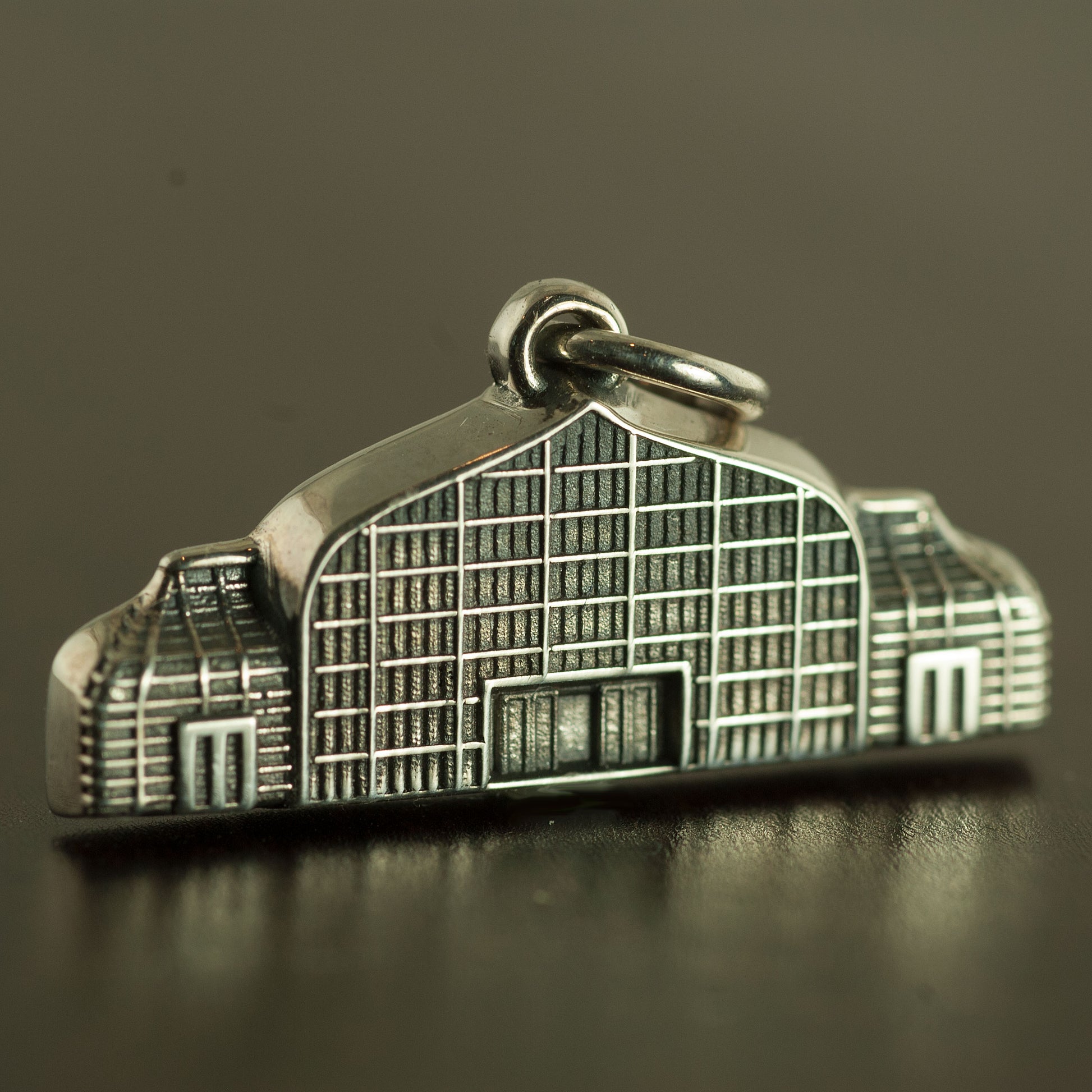 A sterling silver charm depicting the Krohn Conservatory that is located in Cincinnati's Eden Park.