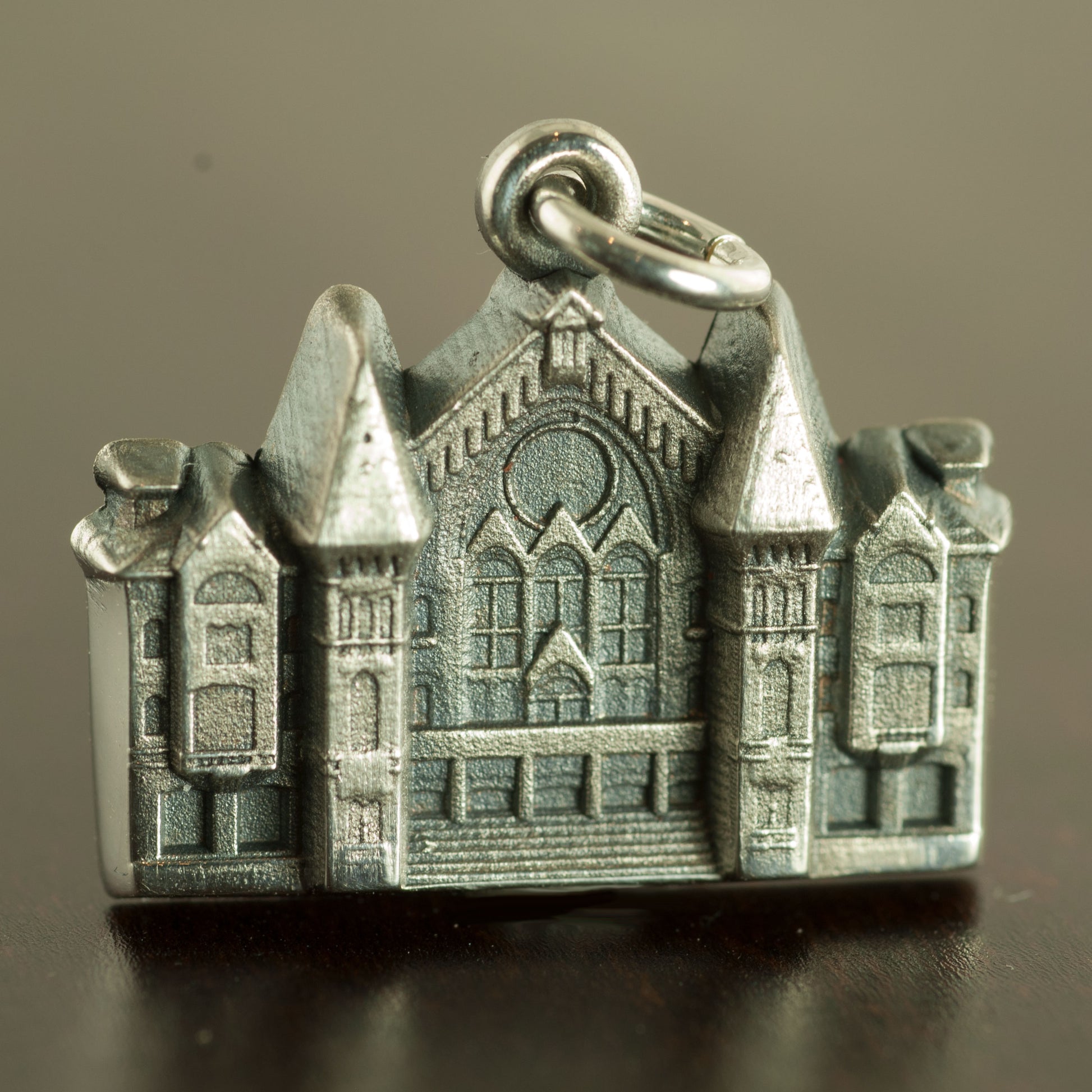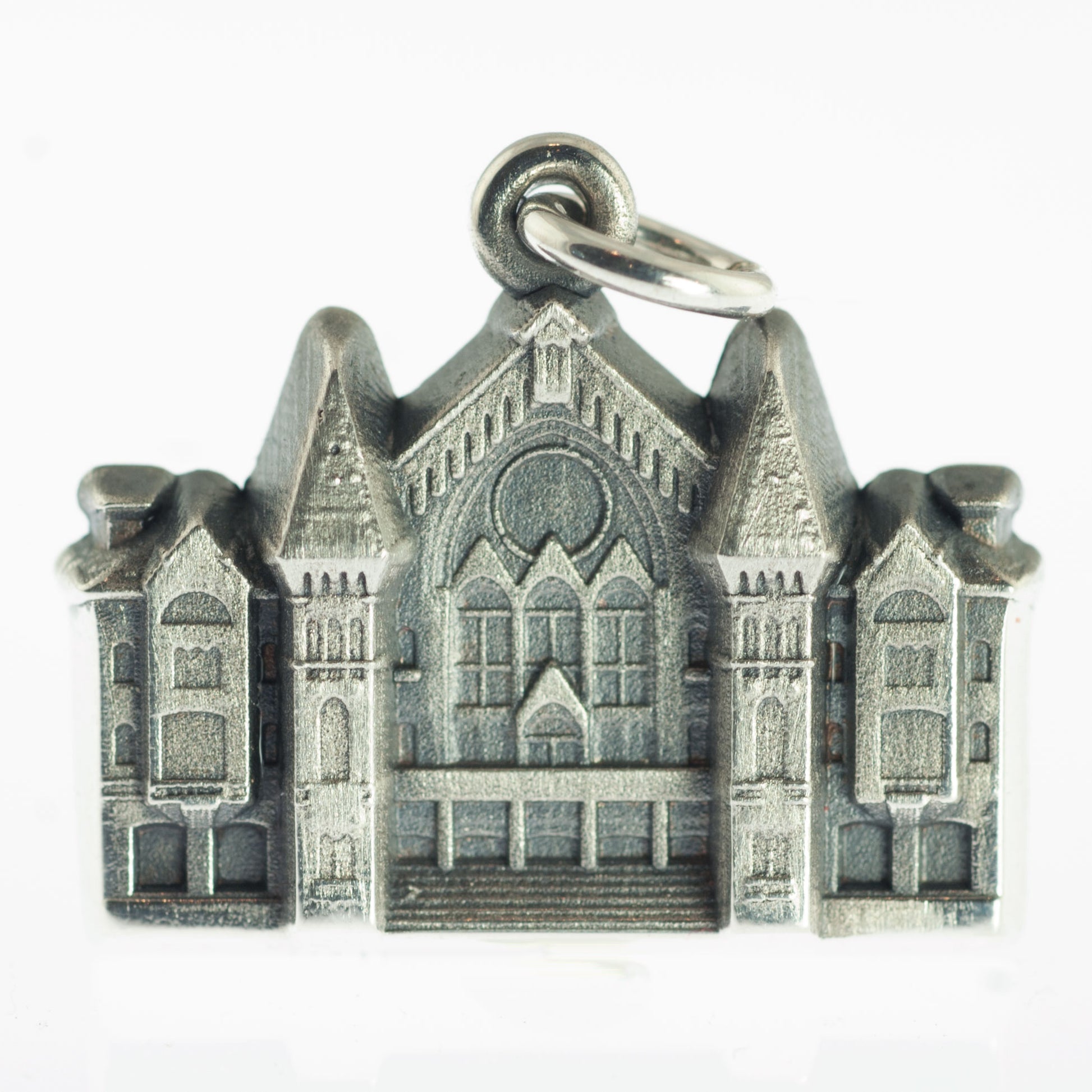 A sterling silver charm depicting the Music Hall in the Over the Rhine community in downtown Cincinnati.