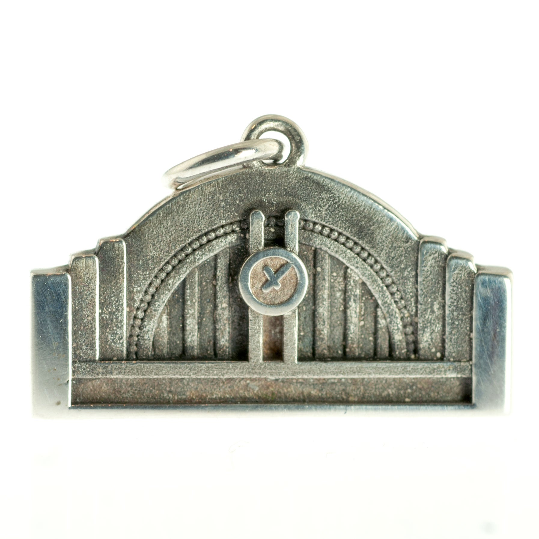 This is a sterling silver charm depicting the Union Terminal in downtown Cincinnati.